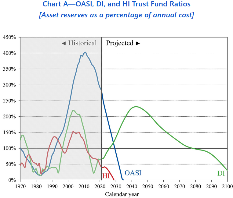 - Annual Trustee Report - shows the financial health of both programs and actuarial projections. The latest report was released June 2, 2022 with useful information (and main source for this blog).