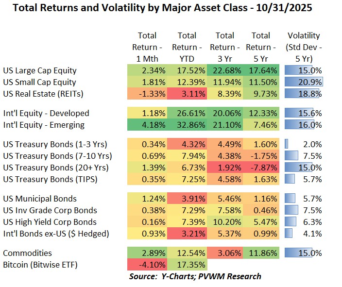 Asset Class Returns - 10/31/2025