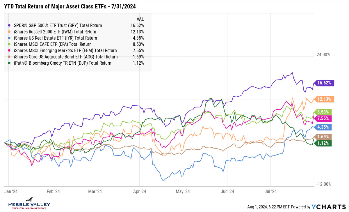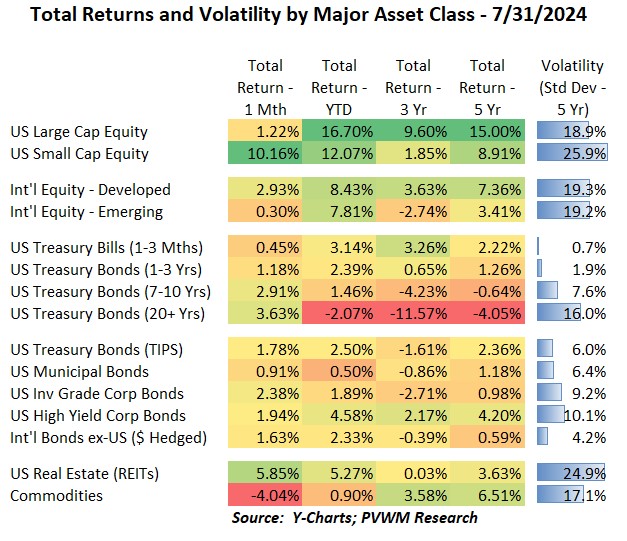 NOTE: These comments are based on data through 7/31/2024 which includes the post-FOMC frenzy. There were noticeable losses in many risky asset classes today – 8/1.