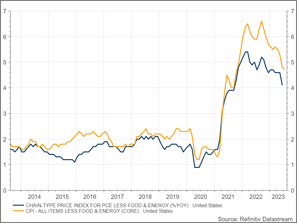 The Federal Reserve also looks at “supercore” PCE which excludes the Housing component from the Core PCE reading for a cleaner view of underlying activity.