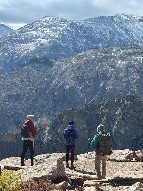 Our first big hike of the trip was Flattop Mountain and then on to Hallett Peak. Our three kids and I had all hiked Flattop but one hadn’t done Hallett yet. As we approached 10,500 feet the snow began to appear from the previous night’s storm. The closer we got to the top of Flattop the heavy fog and clouds kept rolling in. We made it to the top of Flattop (first photo) but realized it would be too risky to continue to Hallett (peak sticking out of clouds). We still enjoyed the hike and had some amazing views overlooking Emerald Lake on the way down. For retirement, your environment may feel comfortable and ready to do something again, but always remain vigilant of changing conditions to your familiar territory and adjust plans accordingly if the risks appear too high.