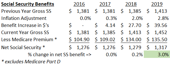So not only is the inflation adjustment relatively high for 2019 Social Security benefits but the modest increase in Medicare premiums and no more "hold harmless" impacts means you can actually enjoy the increase in your bank account. That is something to be thankful for!