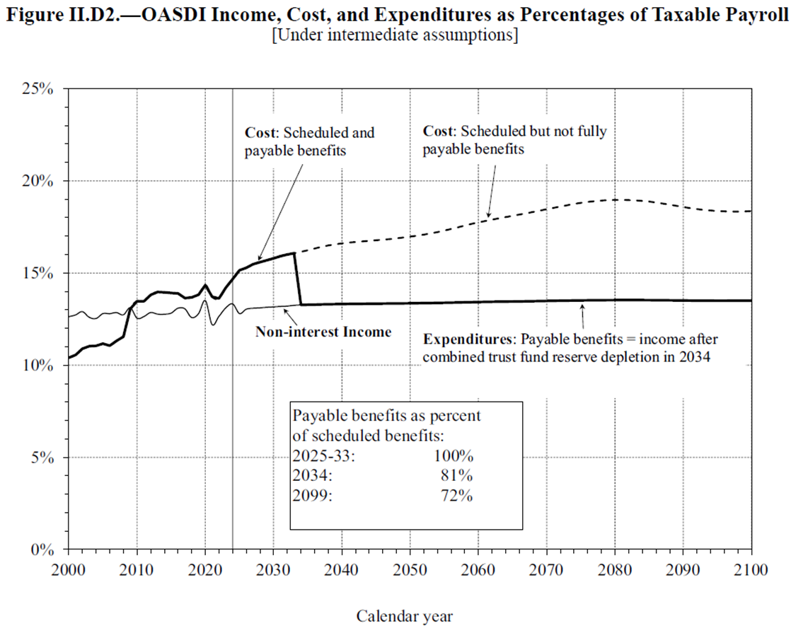 - NOTE: combined OASDI 100% covered to 2034, then 81%