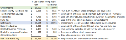 It may seem at this point in life you won’t have a need for liquid funds to cover unexpected expenses – job loss (just hired), leaky roof (I don’t own), or the car breaks down (click Uber). But you will have an occasional need for unexpected cash outlays larger than the monthly budget. A credit card may give you some flexibility but you want to get in the habit of paying off the credit card every month. Because of this, don’t put all your extra savings in a 401k or IRA. Establish a savings fund with after-tax dollars to put a safety valve on your finances. See the next section on using tax savings from a Traditional 401k to kick-start this funding.